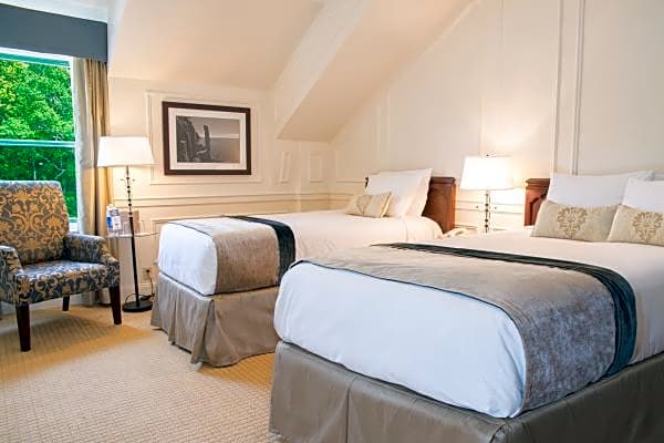 Relax and enjoy all the comforts and amenities the Digby Pines Golf Resort and Spa has to offer. Welcome to our Three Bedroom Cottage with Queen Bed, 2 Double Beds and 2 Twin Beds. Find yourself socializing in the living room, enjoy endless conversations by the stone fireplace or embrace the Nova Scotia surroundings on the covered cottage deck. Our cottages accommodations make it easy for guests to understand why so many call us "The Pines". This cottage comes equipped with: * 1 Queen Bed, 2 Double Beds amd 2 Twin Beds * 2 Ensuite Bathrooms * Living Room * Mini Fridge * Nespresso Coffee Machine * Charming Stone Fireplace * Television with HD Cable * High-Speed Internet